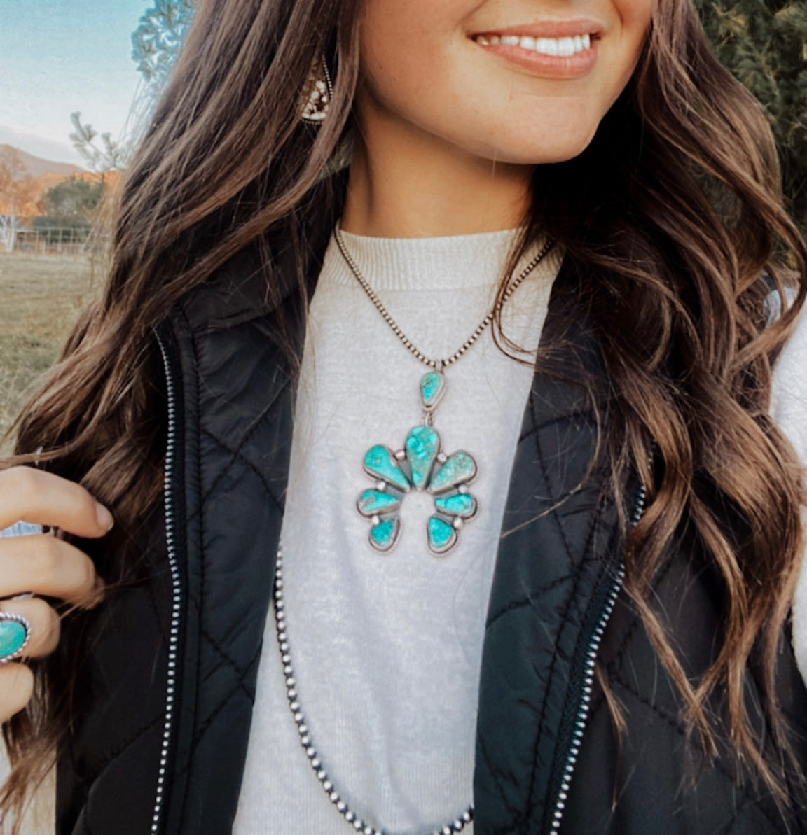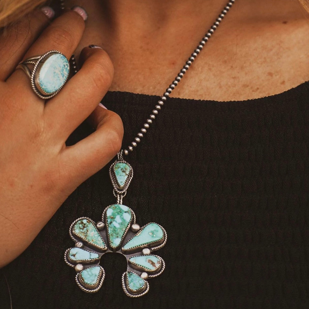 Turquoise and Silver is the only jewelry I wear. Last year I found The White Buffalo on Instagram and fell in love with her style and bought my first of her pieces. I now own numerous all unique, beautiful quality, made with her heart and soul. Customer service is absolutely the best. She wants to give her customers her best and bring their dreams to life. Now having a custom piece done. She is my favorite Silversmith of all time.