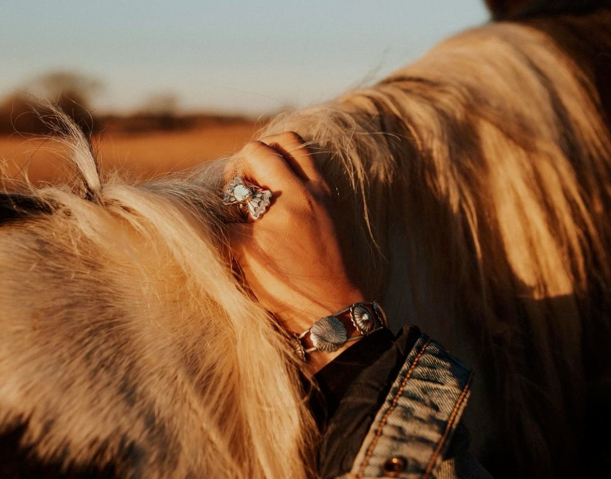 Do NOT get your jewelry wet. Silver can tarnish and turquoise is extremely porous. Over time, with contact to water/soap/pools, it will change the look of your piece. I build these quality heirlooms to last. Please take good care of them so they can be passed down to your family one day.
