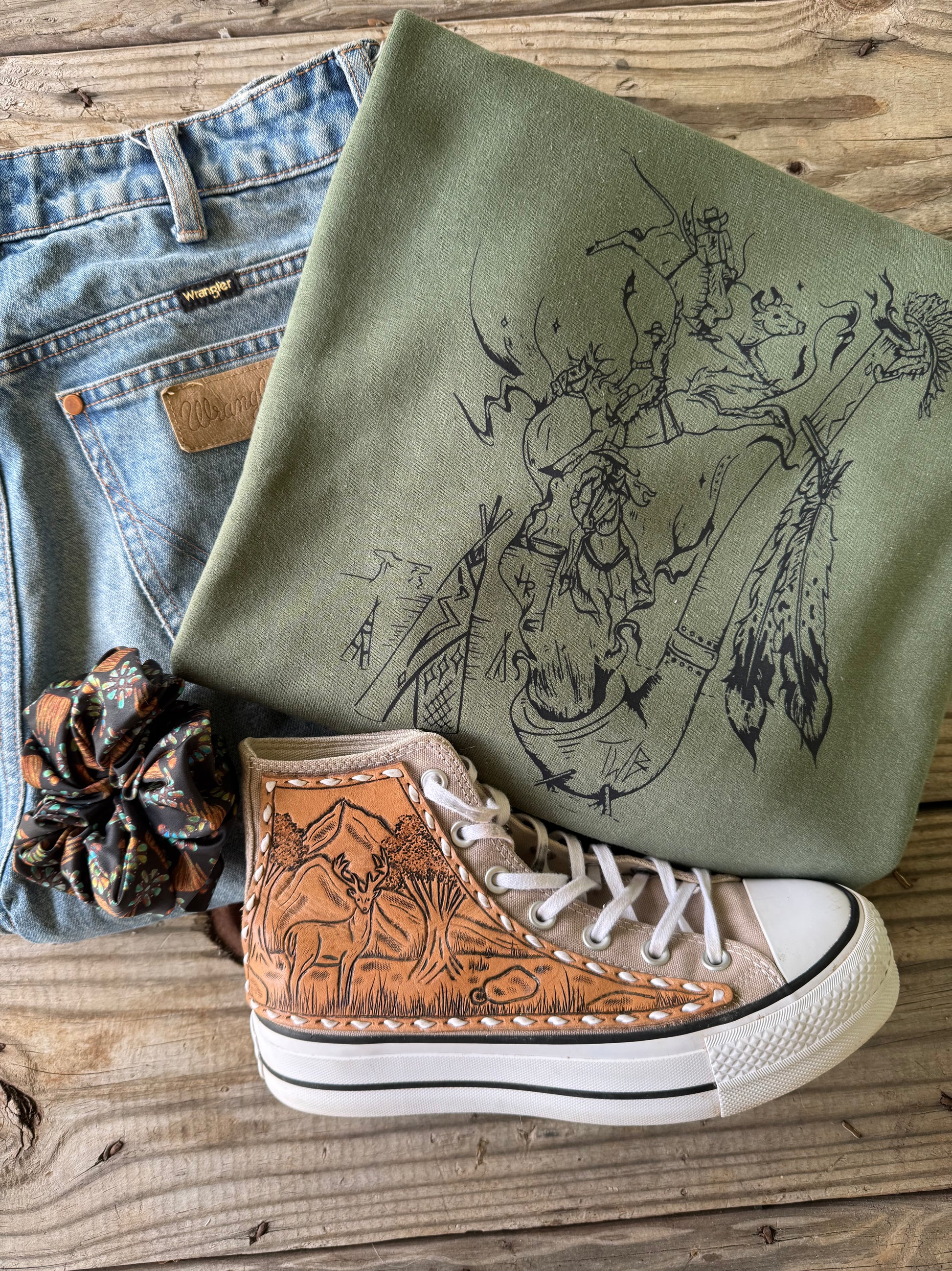 Gildan heavy duty crew neck with artwork done by Haley Rae exclusively owned by TwB