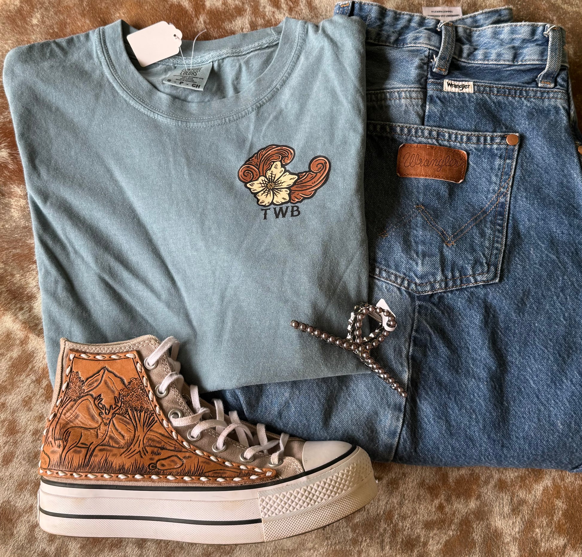 Blue double sided tee with exclusive design by wild MF design 100% cotton