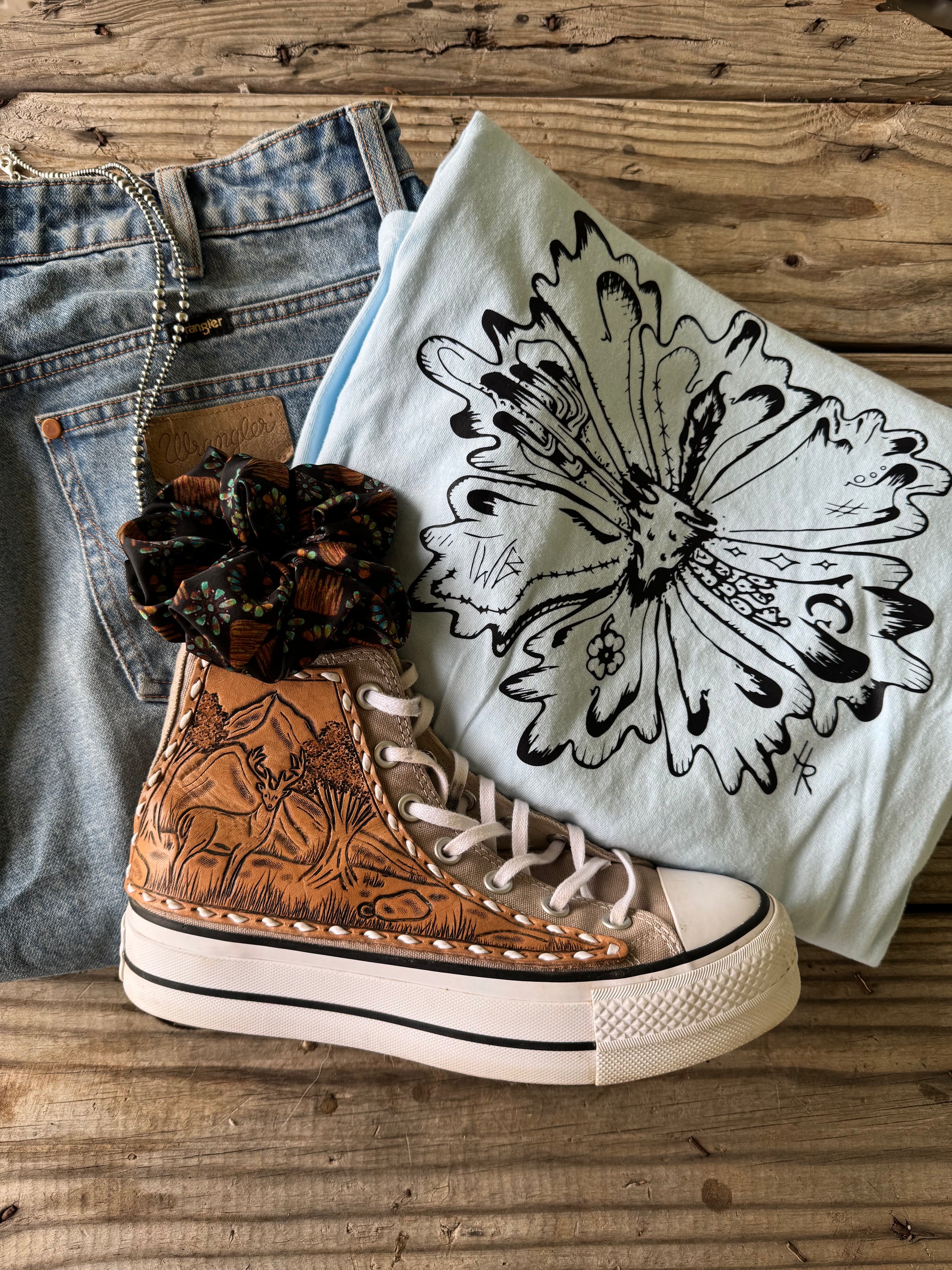 hand drawn by Haley Rae, hand pressed and exclusively owned by TwB. Chambray comfort colors 100% cotton long sleeve tee