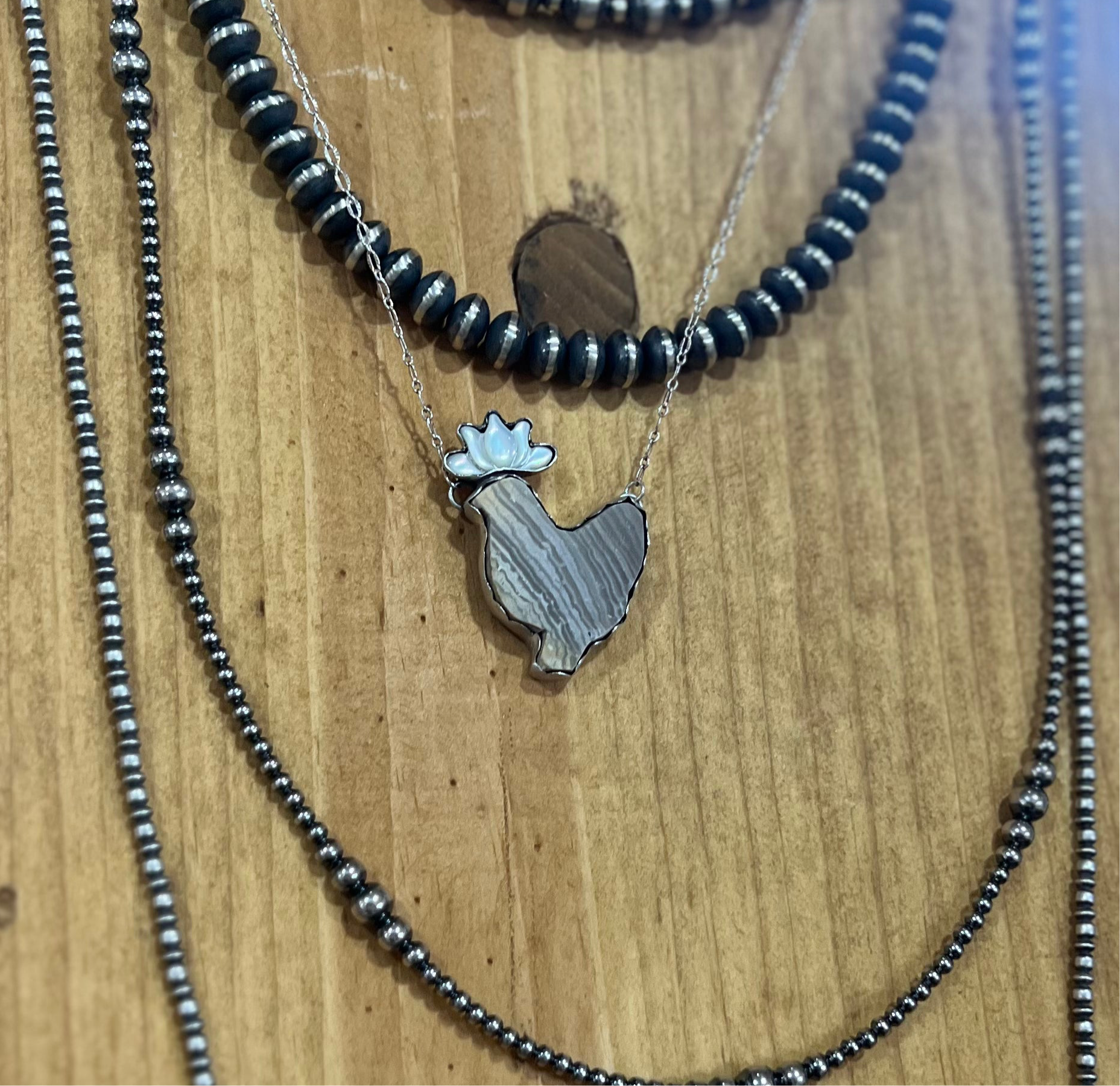 Slate grey with mother of pearl comb set in sterling silver with unique 18” chain