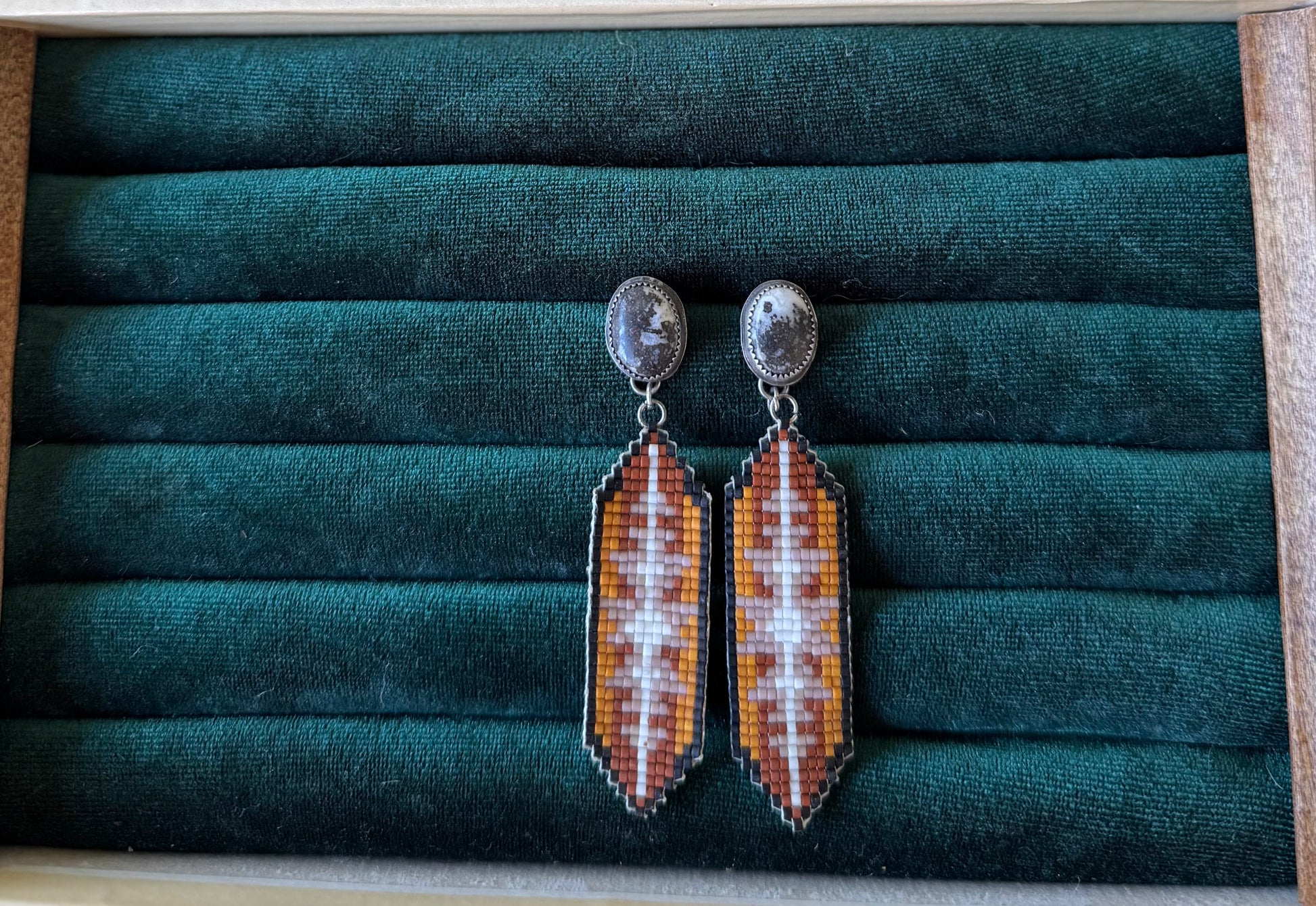White buffalo set in Sterling silver with beading done by the amazing bears beads measuring at 3 1/8”