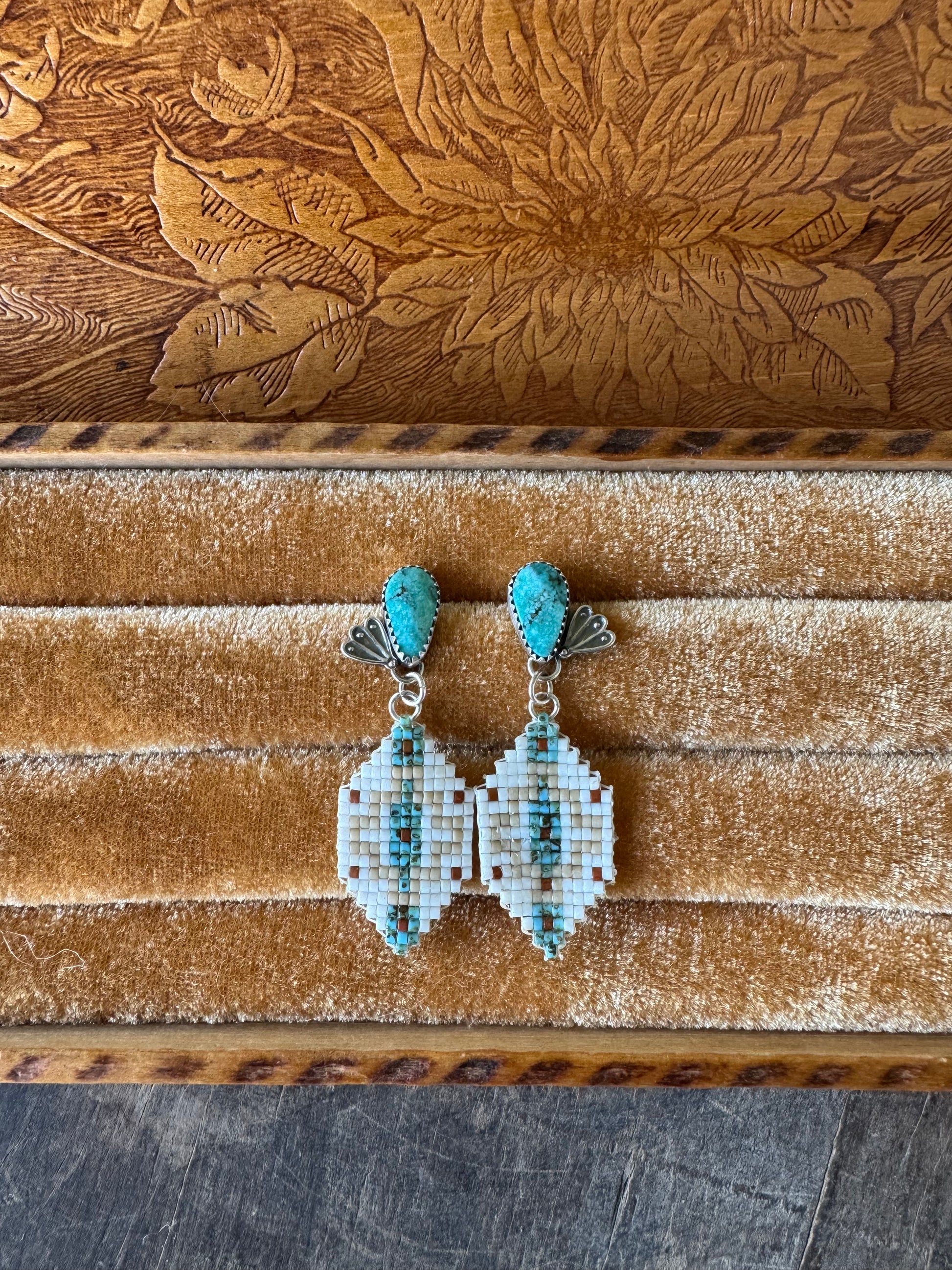 Kingman turquoise set in sterling silver with beading done by the amazing bears beads measuring at 2 1/8”