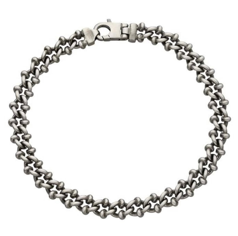 black ruthenium plated sterling silver crab chain bracelet measuring at 8.5” this is the perfect everyday bracelet