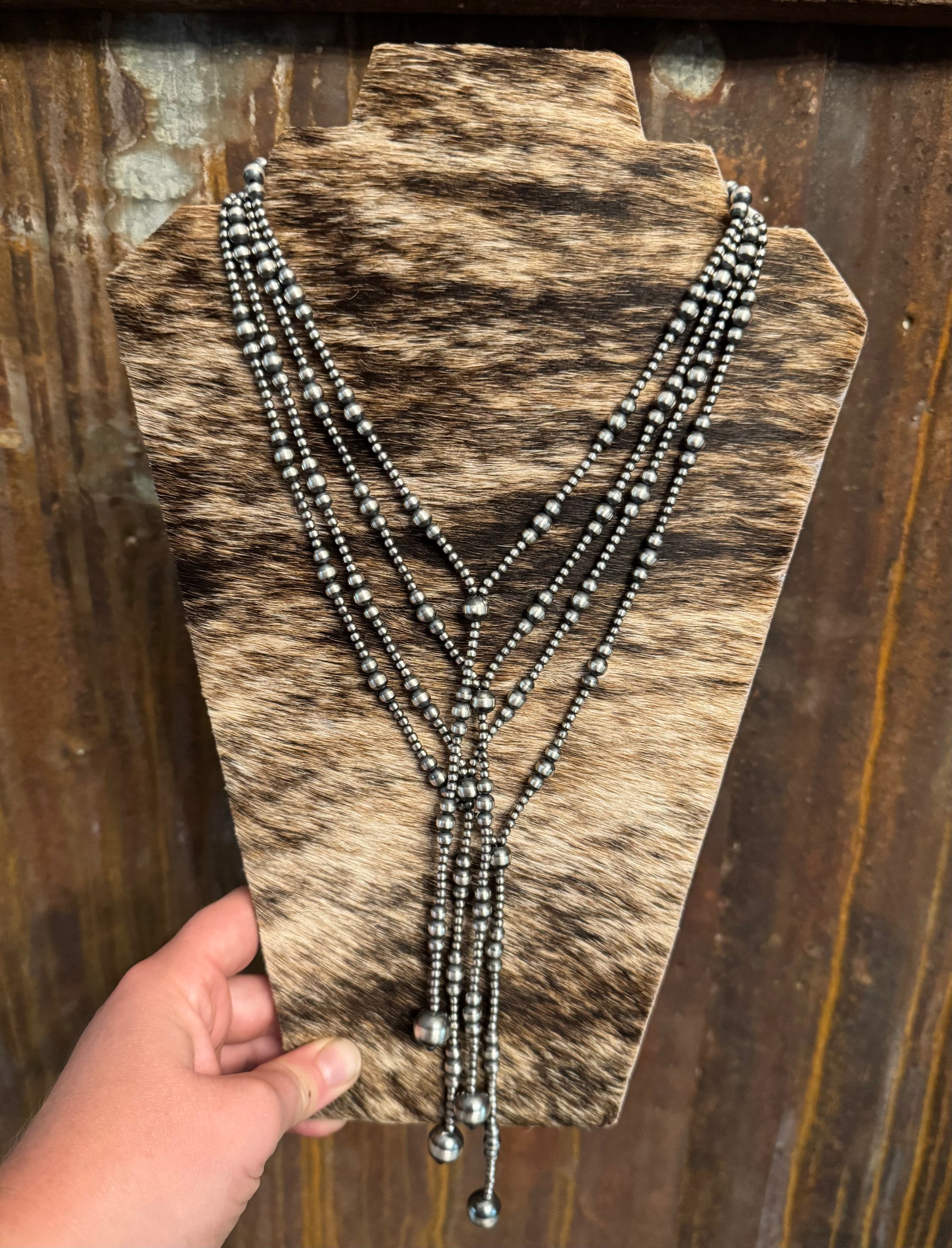 Lariat style, Sterling silver Navajo pearls with a dramatic combination of 3/5/6/8/12mm pearls